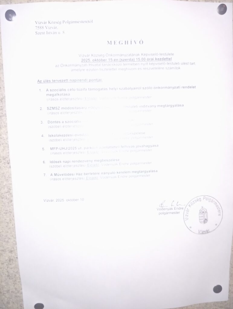 2025.10. 15. Szerda 15:00 Testületi ülés